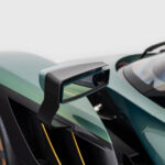 the aston martin valkyrie amr pro presents an exterior defined by uncompromising aerodynamic intent. the full carbon-fiber body adopts an elongated chassis architecture, sculpted to stabilise airflow at extreme speeds and reinforce its prototype-inspired silhouette. finished in the rare iridescent emerald with trophy gold graphic accents, this configuration combines a visually striking presence with a highly specialised aerodynamic package engineered exclusively for circuit performance.