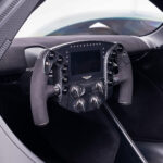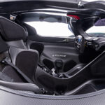 inside, the cockpit delivers a pure motorsport environment, executed entirely in pure black alcantara to enhance grip and reduce reflections. the fixed carbon-fiber seats and fia-certified six-point harnesses create a secure, competition-ready driving position, while the detachable steering wheel with integrated telemetry underscores the car’s data-driven track philosophy. forged-carbon shift paddles, lightweight aluminium pedal assemblies and the red anodised ignition bezel provide subtle, collector-oriented distinctions unique to this chassis.