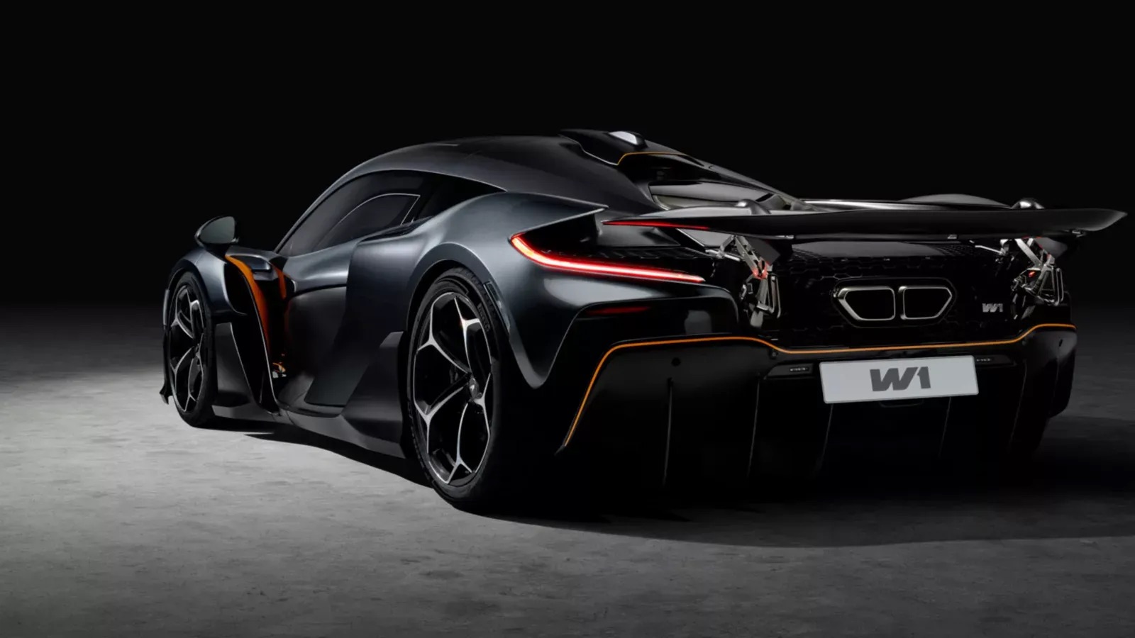 Power is sent exclusively to the rear wheels through an 8-speed dual-clutch transmission with an active e-differential, electric torque assist, and e-reverse. Performance targets place the W1 at the top of the global hypercar segment: 0β100 km/h in 2.7 seconds, 0β200 km/h in 5.8 seconds, and 0β300 km/h in approximately 12.7 seconds, with a top speed of 350 km/h. With an estimated dry weight of 1,399 kg, the W1 achieves a power-to-weight ratio exceeding 900 PS per tonne, surpassing the Senna, P1, and Speedtail. Downforce can reach ~1,000 kg at 250 km/h, enabled by the McLaren Active Long Tail system and race-mode aero calibration.