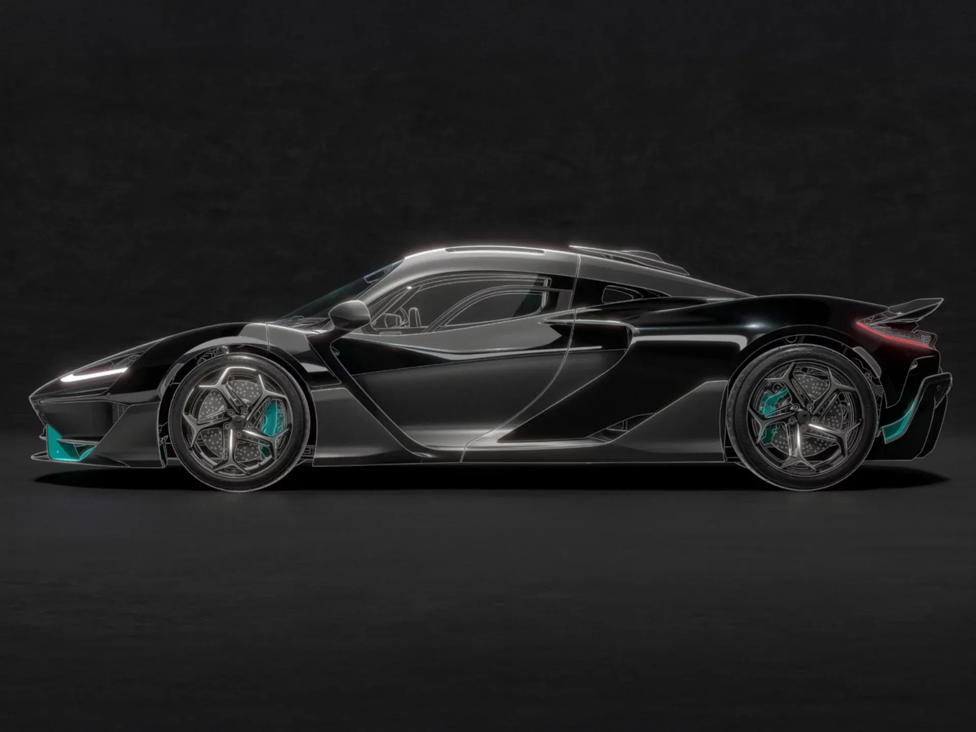 Final exterior configuration will be chosen by the buyer during the production process in 2025. Body type is 2-door hypercar coupe. The design will integrate McLaren Active Long Tail and McLaren Aerocell carbon monocoque. Aerodynamic devices and body panels will be full carbon fibre with active aero elements.