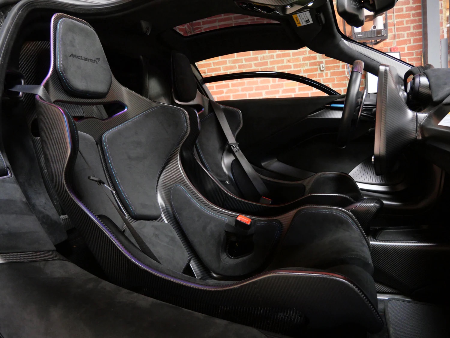 The interior of this McLaren Sabre for sale is centered around a two-seat cockpit layout, designed with the same minimalistic, performance-first philosophy found in McLaren’s track-developed models. The steering wheel incorporates integrated shift lights, offering visual cues derived from McLaren’s GT racing program.