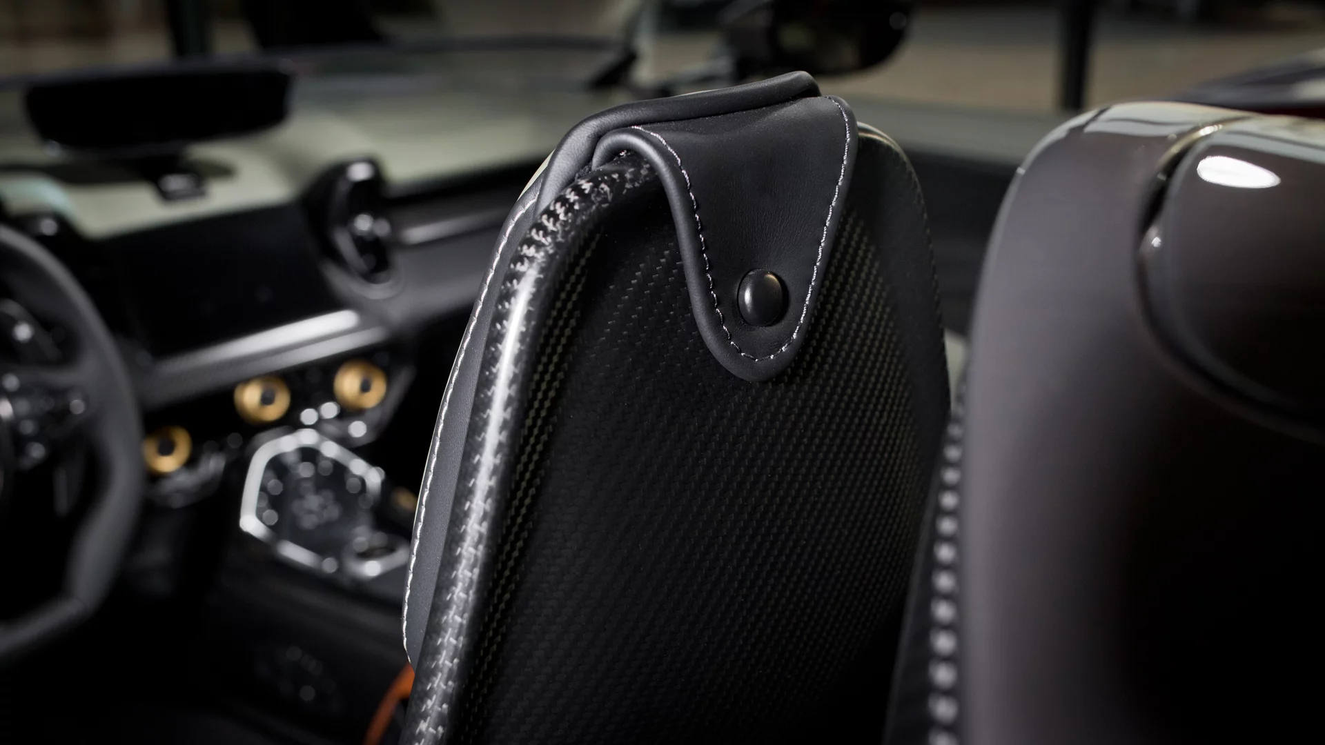 - Two carbon-shell sport bucket seats, trimmed in leather and Alcantara.