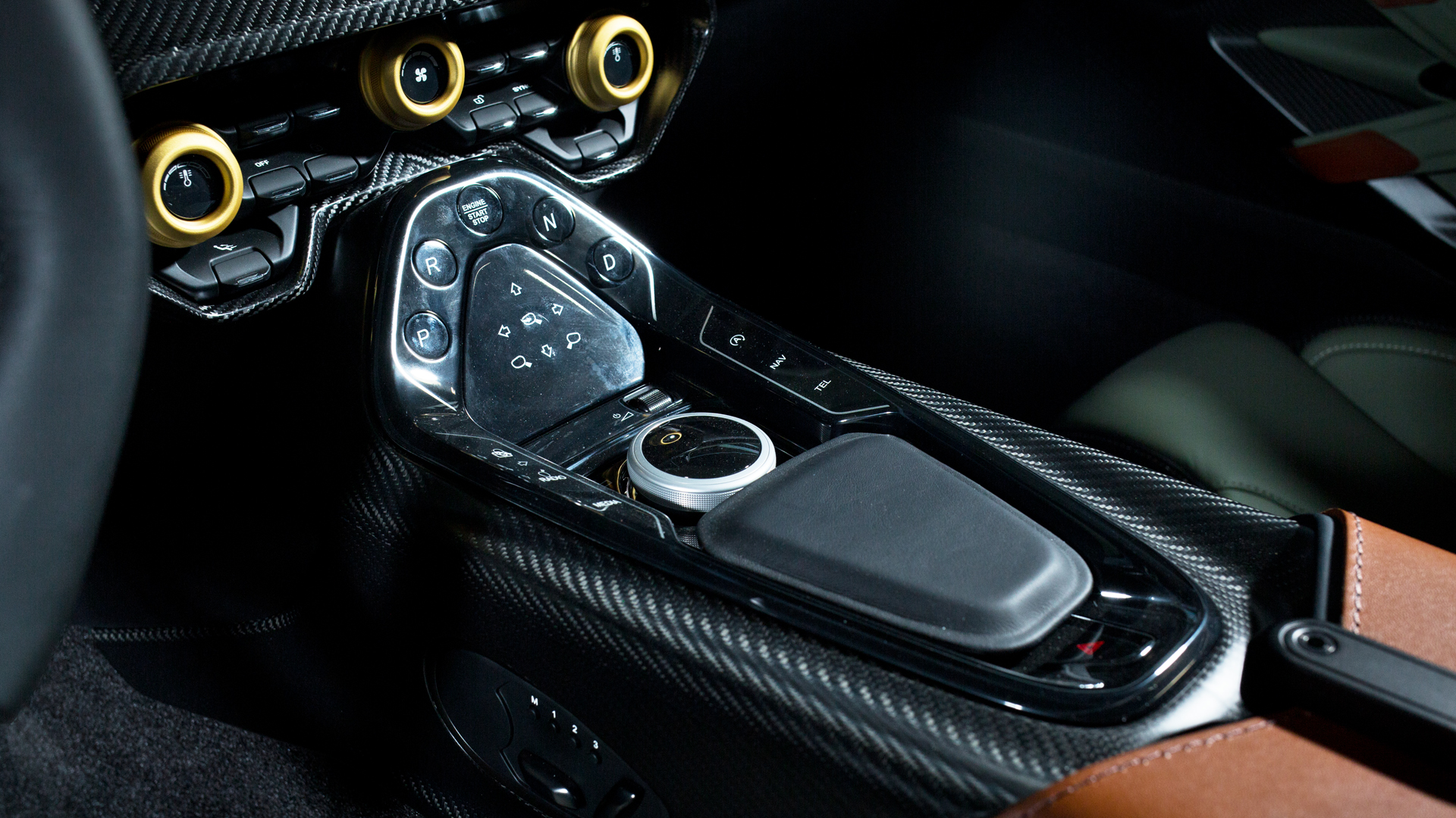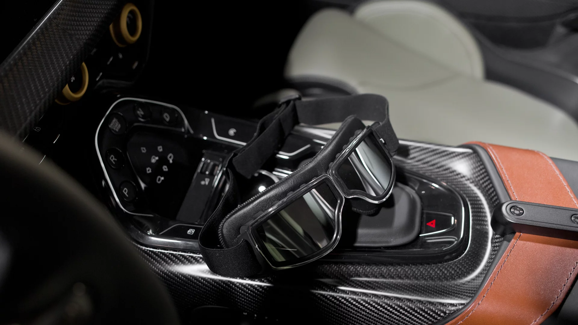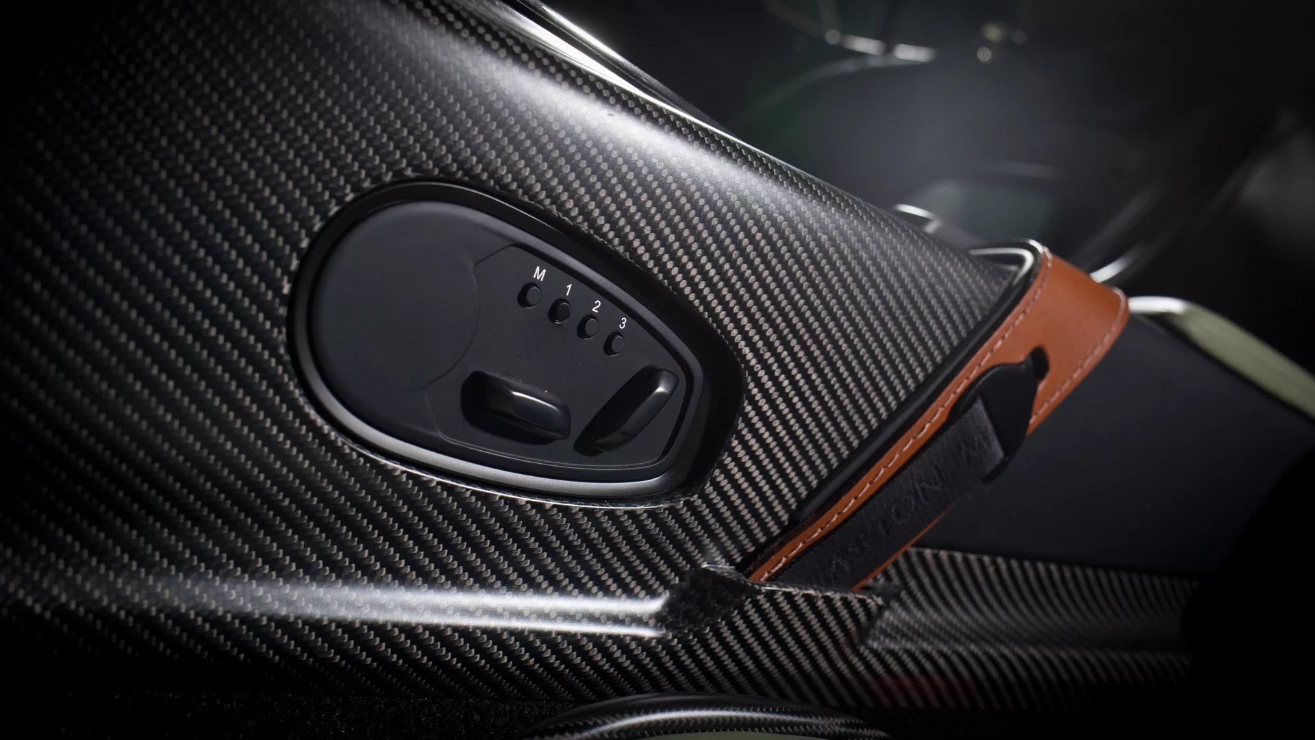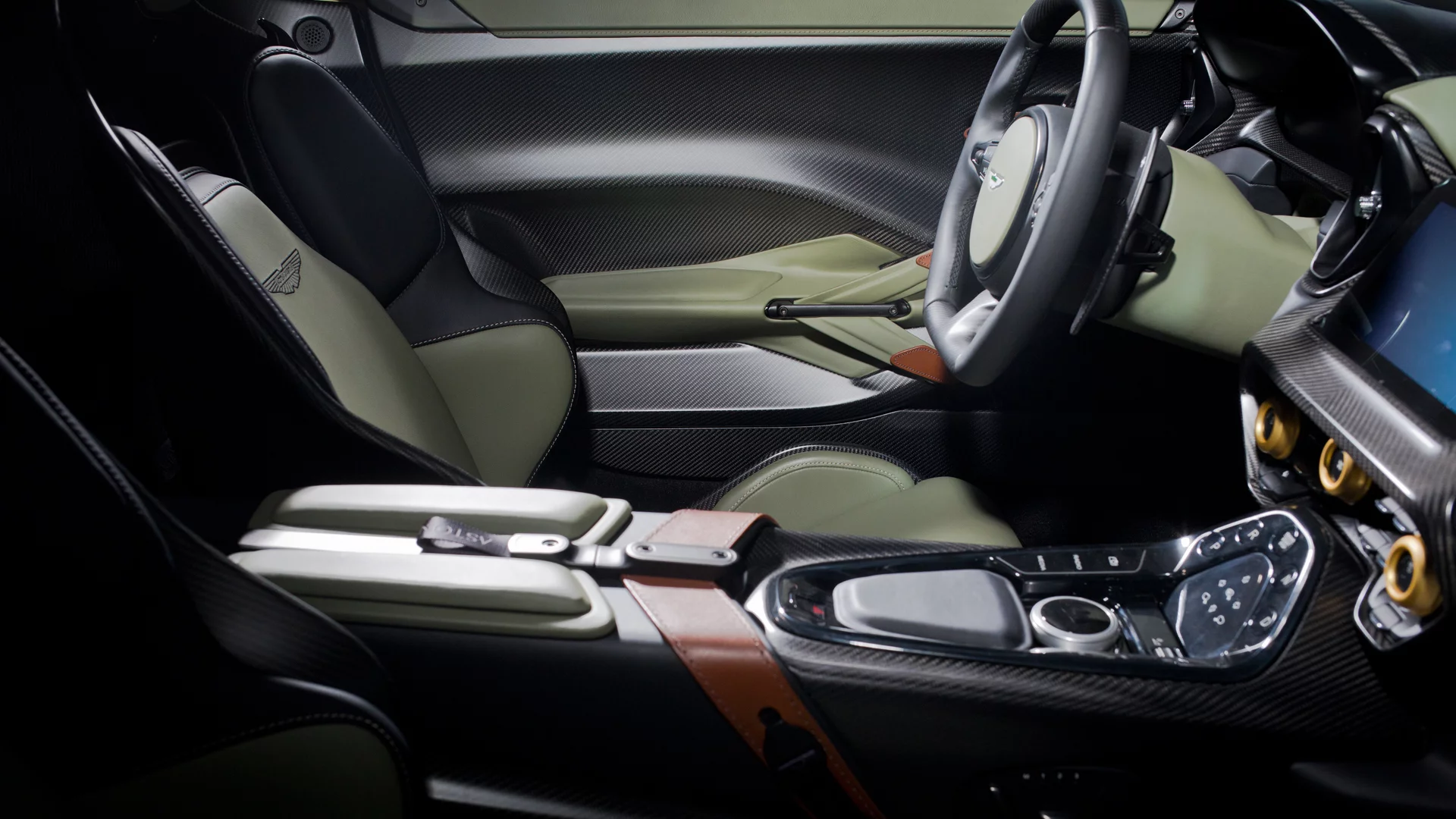 Inside, the DBR22 embraces a purposeful, driver-centric philosophy. The interior architecture integrates exposed carbon elements with hand-trimmed leather and bespoke Q details, maintaining an elevated tactile quality while avoiding unnecessary ornamentation. The seating position is low, intimate, and performance-oriented, offering a precise connection to the chassis. Contrasting stitching, sculpted bucket seats, and finely milled aluminium controls reflect the craftsmanship expected in an ultra-rare Aston Martin, balancing heritage motorsport influences with modern refinement.