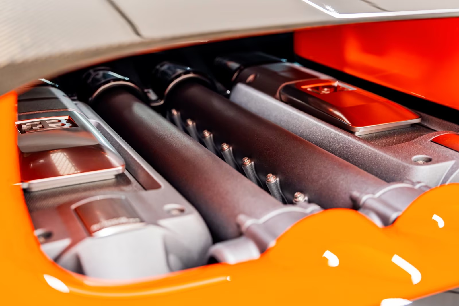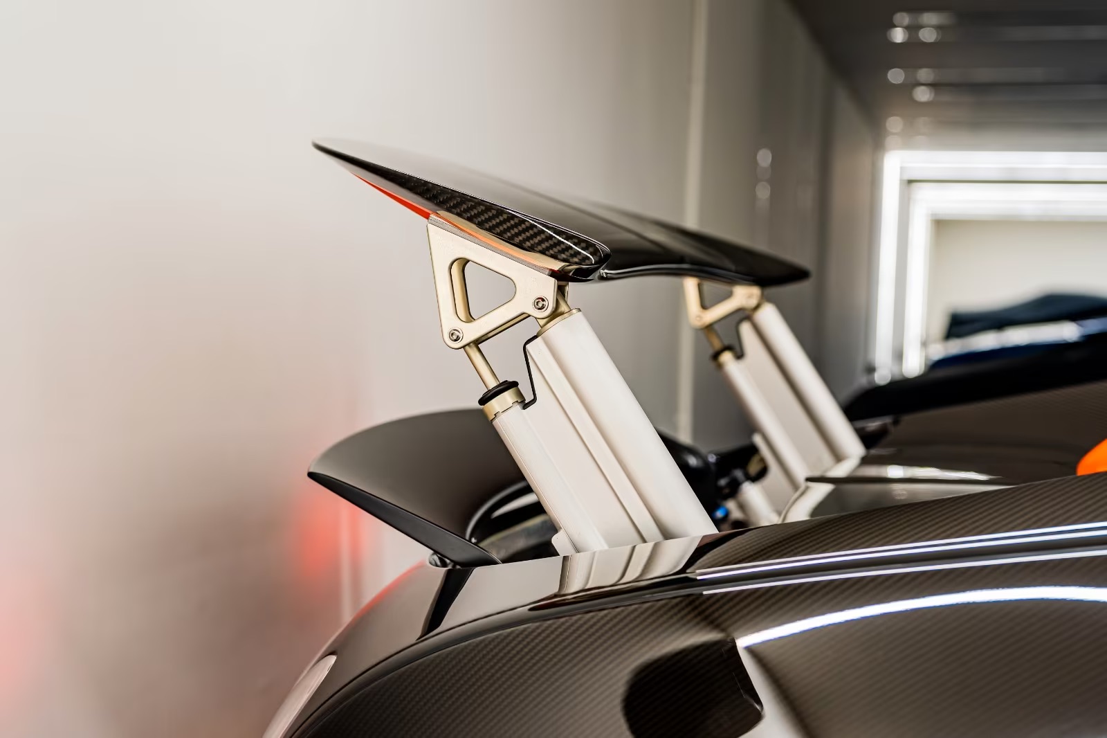 The 5 WRE cars retain the derestricted 431.072 km/h configuration. Later Super Sport customer cars were typically electronically limited to 415 km/h. All WRE examples share black exposed carbon with orange accents. This makes the WRE group closed, identifiable, and non-repeatable.