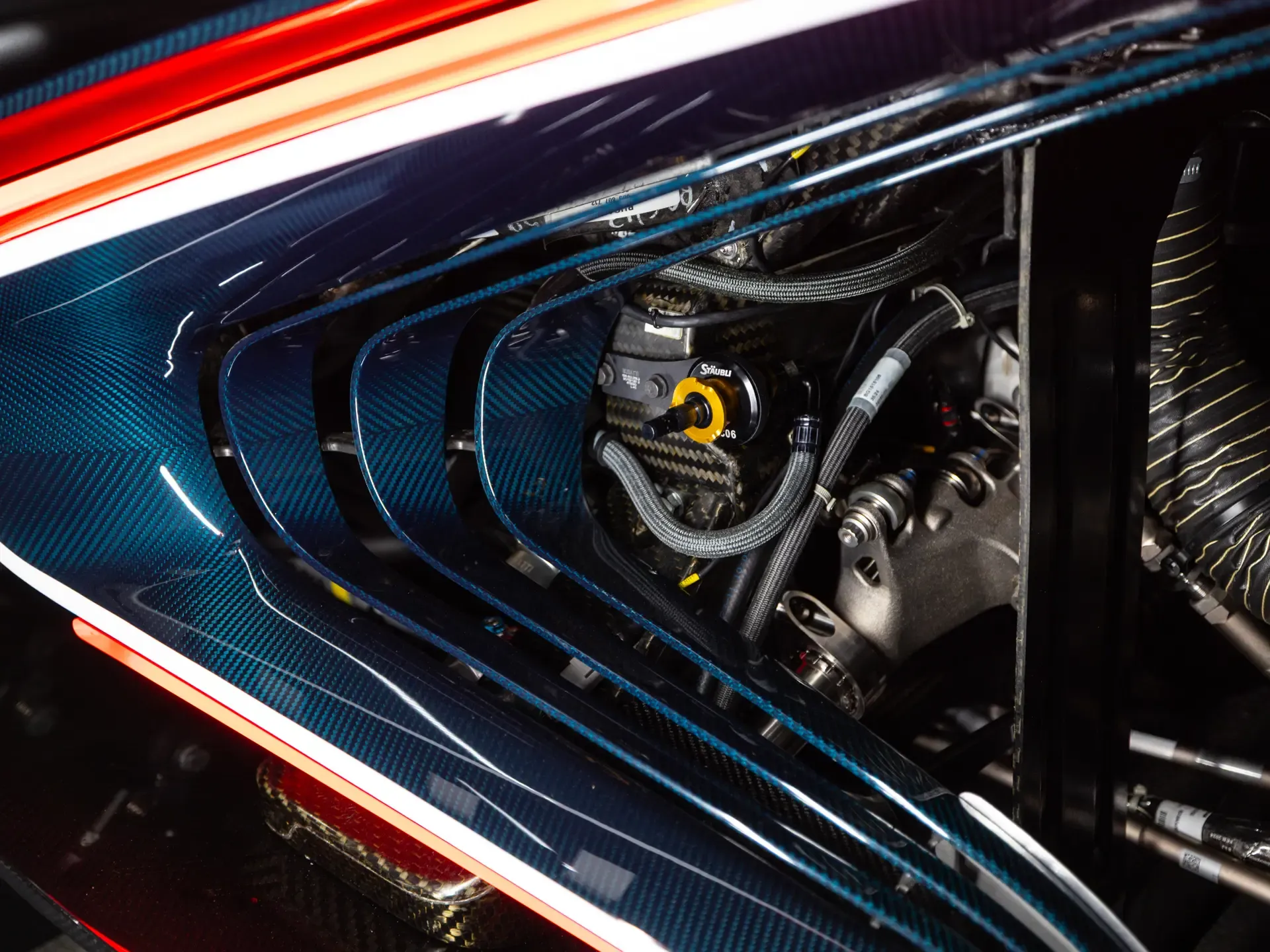 Inside, it’s all Beluga Black Alcantara with matching stitching throughout. The headrests feature Bolide embroidery in Gris Rafale, and the roof panel includes a Circuit de la Sarthe track plate—a nice touch. Occupant safety is serious: six-point belts and HANS system compatibility come standard.